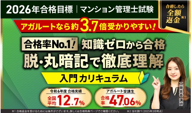 アガルートマンション管理士講座の特徴・合格率・メリット・口コミ傾向を、公式情報をもとに分かりやすく解説します。