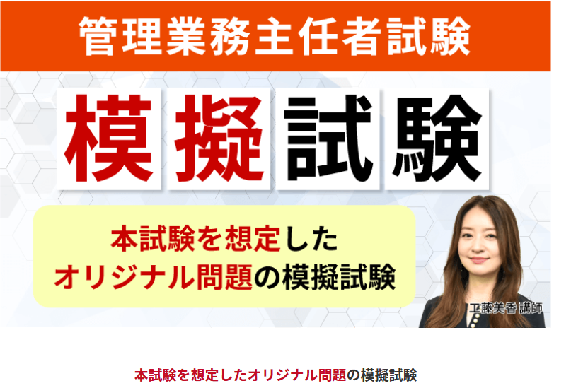 管理業務主任者試験の合否を分けるのは、直前期の「実戦力」です。過去問演習だけでは見えてこない 時間配分の感覚や頻出論点の理解度 を、本番同様の模擬試験で確認しましょう。