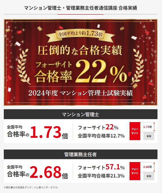 2024年度のフォーサイト合格率は 57.1%。